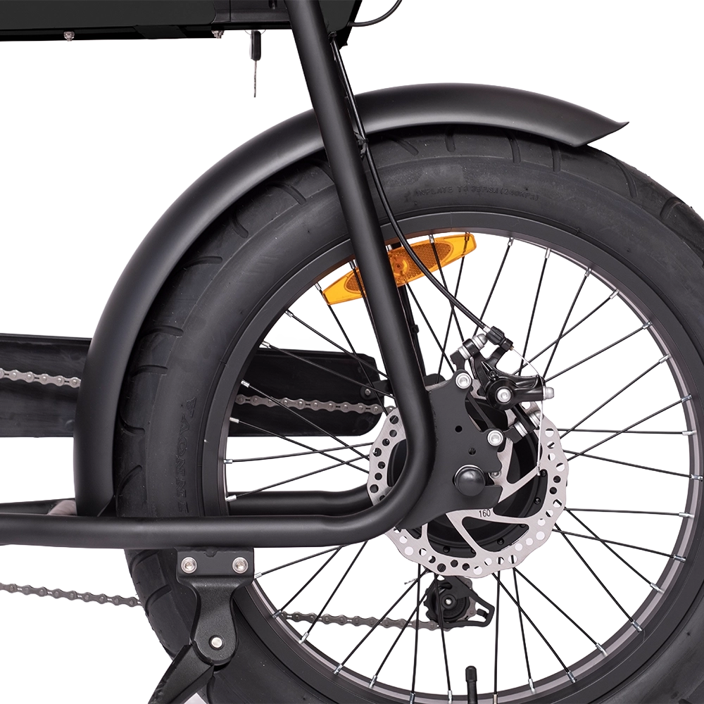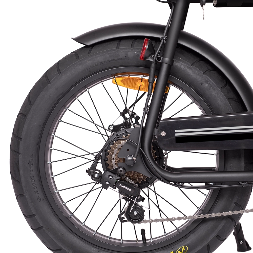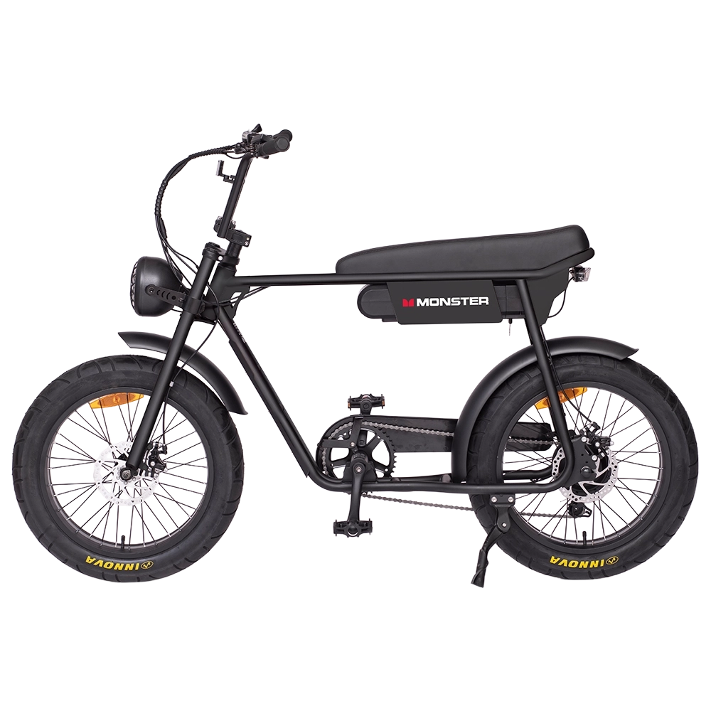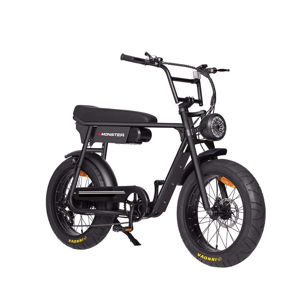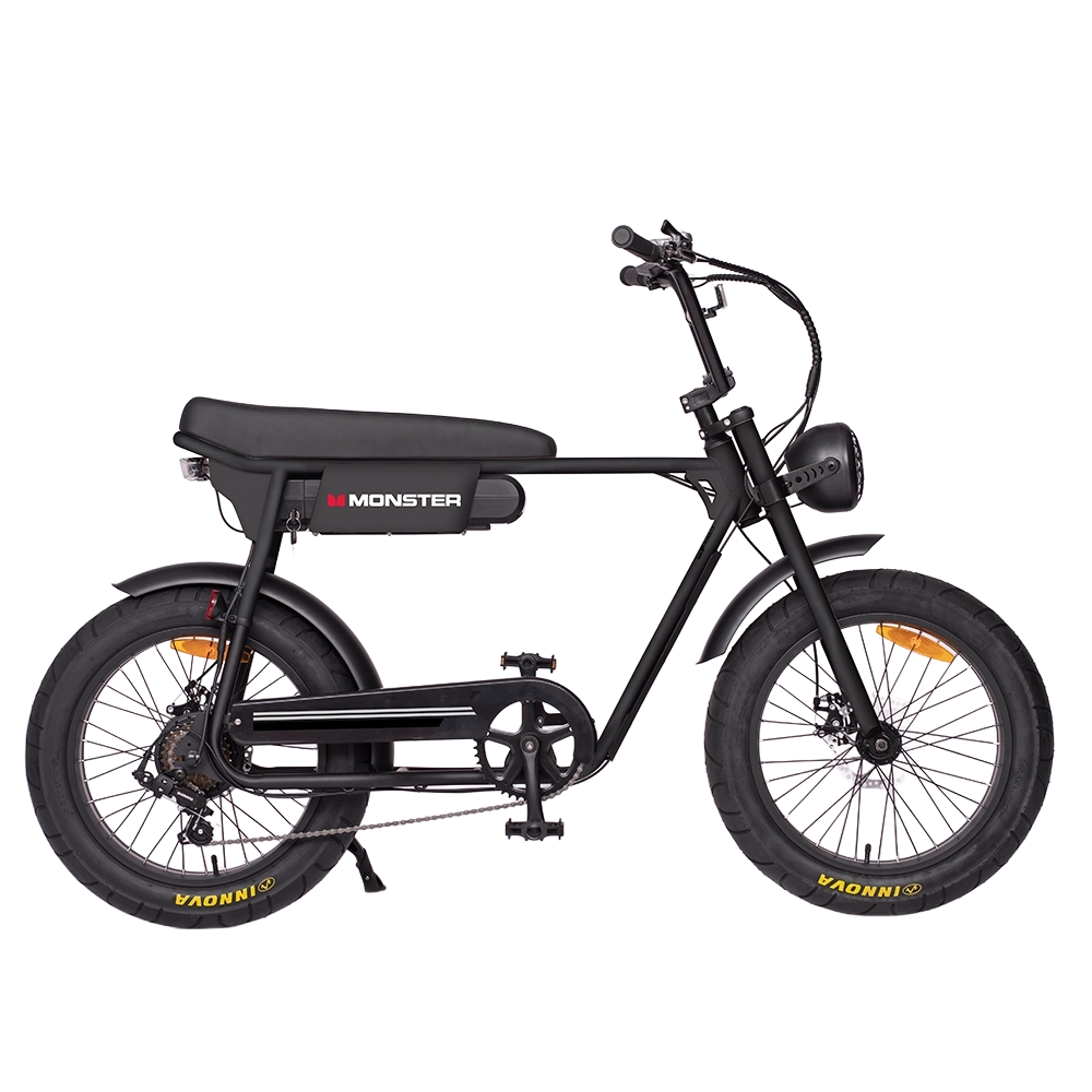 Jump on the Monster fat bike and feel like a boss! Fat 20” tyres provide all the grip you need and a comfortable ride, and the moto style riding position is comfortable and puts you in full control. The durable steel frame can take the knocks that the urban environment dishes out, and disc brakes slow you down on command on the steepest hills. Most of all, the powerful 250w motor will help you accelerate away from a stop and up the steepest hills. Never before has bike looked so cool while being so practical – you will be the envy of your friends on the Monster fat bike!